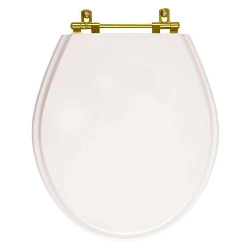 Assento Sanitário Poliester Ravena Branco Ferragem Dourada para Vaso Deca é a escolha perfeita para seu banheiro. Produzido em resina maciça de poliester, é totalmente impermeável, muito resistente. Apresenta excelente durabilidade. Com acabamento de alto padrão, é considerado o melhor material para assentos do mercado. Proporciona mais higiene e conforto. Fica firme no vaso sanitário. Possui ferragem de alumínio anodizado não oxida e não enferruja. Muito resistente. Instalação rápida e fácil, basta uma chave de fenda e fica pronta em menos de um minuto. Compatível para uso em vaso sanitário Deca modelo Ravena com ou sem caixa acoplada.