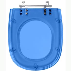 Este assento de vaso sanitário Sabatini Azul Translucido é produzido em resina maciça de poliéster. O poliéster é uma resina semelhante ao acrílico, só que mais robusta / resistente. Por isso, é totalmente impermeável, pode ser lavado com água à vontade. Fácil de limpar. Não acumula sujeira.