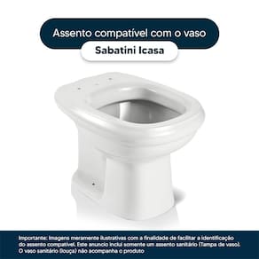 Compatível com o vaso sanitário Icasa modelo Sabatini com ou sem caixa acoplada.