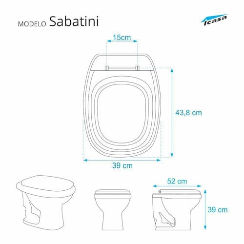 Compatível com o vaso sanitário Icasa modelo Sabatini com ou sem caixa acoplada.