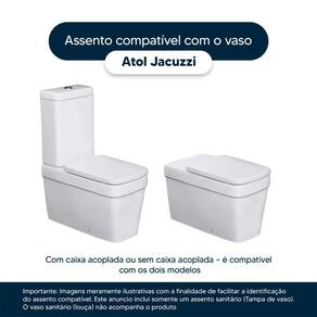 Detalhes e Cuidados Especiais: * Cor: Branco * Compatibilidade: Modelo Atol da marca Jacuzzi * Conteúdo da Embalagem: Assento sanitário, parafusos de fixação e instruções de instalação. * Fabricante do Assento Sanitário: Pontto Lavabo.