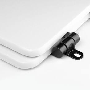 Instalação: Sem desmontar o produto, posicione sobre o vaso sanitário e encaixe os dois parafusos com as borrachas pretas dentro do furo do vaso. Aperte com a chave de fenda no sentido horário até ficar firme. Ao girar o parafuso a porca irá subir, pressionando a borrachinha preta que irá prender por pressão nos furos do vaso.