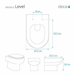 Compatível para uso em vaso sanitário Deca modelo Level com ou sem caixa acoplada.
