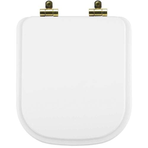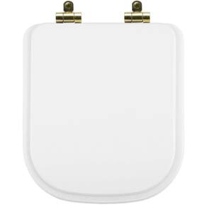 Assento Sanitário Poliéster Soft Close Quadra Branco para Vaso Deca com Ferragem Dourada