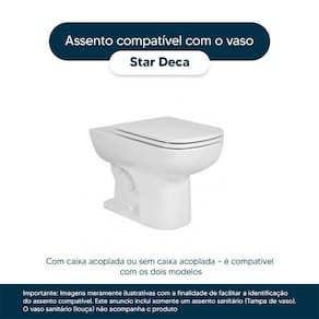Compatível com o vaso sanitário Deca modelo Star com ou sem caixa acoplada.