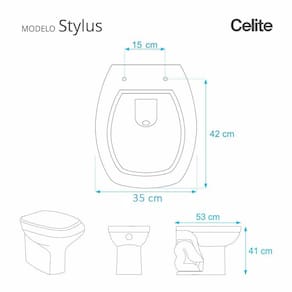 Compatível com o vaso sanitário Celite modelo Stylus com ou sem caixa acoplada (é compatível com os dois tipos de vasos).