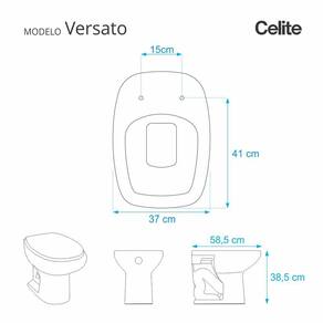 Assento Sanitario Poliester Versato Pergamon (Bege Claro) para Vaso Celite. Assento para vaso sanitário em resina de poliéster, produto de excelente durabilidade com acabamento de alto brilho. É o assento sanitário de maior beleza com resistência e estética inigualáveis. Devido a sua composição maciça em resina de poliéster este produto é totalmente impermeável e de fácil limpeza e higienização. Contêm aditivos contra os efeitos de raios ultravioletas, que evitam a distorção das cores com o passar do tempo. É indicado mesmo nas mais severas condições de uso, como hotéis, bares e restaurantes. Compatível com vasos sanitários de descarga convencional e também vasos com caixa acoplada. Tem 10 calços de PVC instalados na tampa e no assento para proporcionar estabilidade ao distribuir o peso uniformemente sobre a louça sanitária. Embalagem dupla reforçada garante a recepção do produto em sua residência totalmente intacto e protegido. Manutenção: recomendamos a limpeza periódica com água e sabão neutro. Não usar produtos abrasivos, esponjas e/ou palhas de aço, nem qualquer tipo de produto químico. Especificações: - Dimensões da caixa: largura: 51,50cm, altura: 4,00cm, comprimento: 39,00cm - Peso do produto: 2,75kg - Código do produto: 900149 - Cor: Pergamon (Bege Claro) - Acabamento: brilhante - Uso: este assento é adequado para uso na bacia Celite modelo Versato - Marca: Pontto Lavabo - Garantia: 12 meses - Itens inclusos: Tampa e assento com calços de PVC, ferragem inoxidável, embalagem duplamente reforçada. Contém todos os parafusos e encaixes para instalação, sendo necessária somente uma chave de fenda para instalar o produto na bacia sanitária. - Instalação: posicione o produto, devidamente centralizado, em cima do vaso sanitário. Sem desmontar a ferragem, insira as buchas de borracha dentro dos furos da bacia sanitária. Utilizando uma chave de fenda, aperte o parafuso no sentido horário até que o assento esteja firme no vaso.