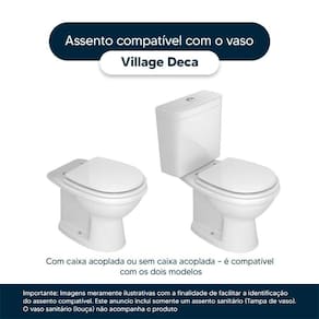 Instalação Simples e Rápida: Com todos os parafusos e componentes necessários inclusos, a instalação é rápida e descomplicada. Seu novo assento estará pronto para uso em questão de minutos. Desenvolvido especificamente para o modelo Village da marca Deca, com ou sem caixa acoplada, proporciona um encaixe perfeito, oferecendo estabilidade e conforto durante o uso.