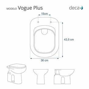 Compatível com o vaso sanitário Deca modelo Vogue Plus com ou sem caixa acoplada.