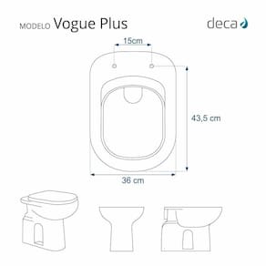 Compatível com o vaso sanitário Deca modelo Vogue Plus com ou sem caixa acoplada.