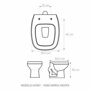 O Assento Sanitário Avant Preto é perfeito para quem busca qualidade e conforto. Fabricado em polipropileno e polietileno especial, este assento é resistente, durável e possui um excelente acabamento. Seu design sofisticado e arco almofadado proporcionam um assento macio e confortável. Este produto é totalmente impermeável, o que facilita a limpeza e higienização. Além disso, ele é compatível com vasos sanitários de descarga convencional e também com vasos com caixa acoplada. O acabamento brilhante no tampo e no assento dá um toque de elegância ao ambiente. A fixação regulável do assento garante um encaixe perfeito na louça sanitária, proporcionando estabilidade e segurança. Além disso, a fácil limpeza do assento o torna higiênico e evita o acúmulo de sujeira. O Assento Sanitário Avant Preto acompanha parafusos e acabamentos para instalação, garantindo praticidade e comodidade. Sua embalagem duplamente reforçada garante que o produto chegue em perfeitas condições. Especificações: - Dimensões da caixa: largura: 50,00cm, altura: 4,00cm, comprimento: 40,00cm - Acabamento: brilhante - Uso: adequado para uso na louça Incepa modelo Avant - : 3 meses - Itens inclusos: tampa e assento, parafusos e embalagem duplamente reforçada Instalação: Posicione o Assento Sanitário Avant Preto, devidamente centralizado, em cima do vaso sanitário. Encaixe os parafusos e as porcas. Aperte até que o assento esteja firmemente fixado no vaso. Manutenção: Para manter o Assento Sanitário Avant Preto sempre limpo, recomendamos a limpeza periódica com um pano levemente umedecido com sabão neutro. Não utilize esponjas abrasivas, palha de aço ou qualquer tipo de produto químico. O Assento Sanitário Avant Preto é a escolha perfeita para quem busca qualidade, conforto e praticidade. Garanta já o seu e tenha um banheiro sofisticado e funcional.