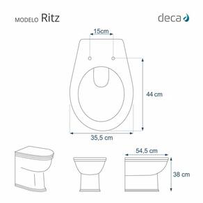 Detalhes e Cuidados Especiais: * Cor: Creme (Bege Claro) com Ferragem Dourada * Compatibilidade: Modelo Ritz da marca Deca * Conteúdo da Embalagem: Assento sanitário, parafusos de fixação e instruções de instalação. * Fabricante do Assento Sanitário: Pontto Lavabo.