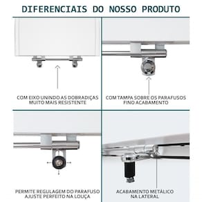 Instalação: Não é necessário desmontar nenhuma peça do produto. Posicionar e encaixar na louça sanitária os dois parafs com as borrachas pretas dentro dos furos do vaso. Aperte com a chave de fenda no sentido horário até ficar firme.