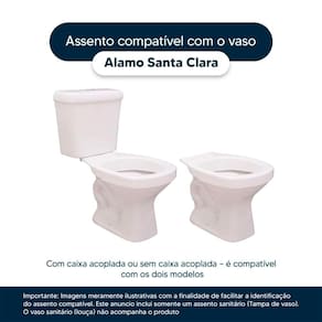 Instalação Simples e Rápida: Com todos os parafusos e componentes necessários inclusos, a instalação é rápida e descomplicada. Seu novo assento estará pronto para uso em questão de minutos. Desenvolvido especificamente para o modelo Alamo da marca Santa Clara, com ou sem caixa acoplada, proporciona um encaixe perfeito, oferecendo estabilidade e conforto durante o uso.