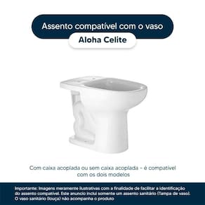 Detalhes e Cuidados Especiais: * Cor: Cinza Prata * Compatibilidade: Modelo Aloha da marca Celite * Conteúdo da Embalagem: Assento sanitário, parafusos de fixação e instruções de instalação. * Fabricante do Assento Sanitário: Pontto Lavabo.