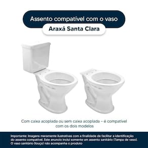 Detalhes e Cuidados Especiais: * Cor: Cinza Escuro * Compatibilidade: Modelo Araxa da marca Santa Clara * Conteúdo da Embalagem: Assento sanitário, parafusos de fixação e instruções de instalação. * Fabricante do Assento Sanitário: Pontto Lavabo.