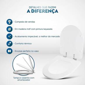 Durabilidade e Resistência: Fabricado em MDF com camadas de pintura laqueada, este assento oferece não apenas beleza, mas também conforto térmico e alta resistência. Seu acabamento impecável adiciona um toque de classe ao seu banheiro.