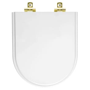 Assento Sanitário Soft Close Smart Branco Para Vaso Celite Com Ferragem Dourada Dê um toque de elegância e modernidade ao seu banheiro com o Assento Sanitário Soft Close Smart Branco para vaso Celite com Ferragem Dourada. Com seu sistema exclusivo de fechamento suave, seguindo as últimas tendências em decoração, proporciona uma experiência moderna e funcional. Elegância e Diferenciação: Um design refinado e diferenciais de alto padrão. Com acabamento de excelência e ferragens em alumínio anodizado na cor Dourada que não oxidam nem enferrujam, ele é a combinação perfeita de beleza e durabilidade.