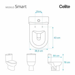 Compatível para uso em vaso sanitário Celite modelo Smart com ou sem caixa acoplada.