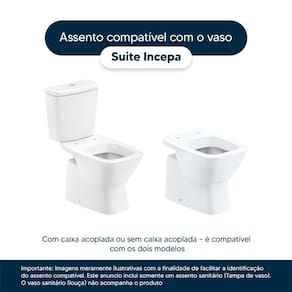 Detalhes e Cuidados Especiais: * Cor: Branco * Compatibilidade: Modelo Suite da marca Incepa * Conteúdo da Embalagem: Assento sanitário, parafusos de fixação e instruções de instalação. * Fabricante do Assento Sanitário: Pontto Lavabo.