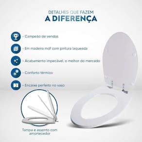 Durabilidade e Resistência: Fabricado em MDF com camadas de pintura laqueada, este assento oferece não apenas beleza, mas também conforto térmico e alta resistência. Seu acabamento impecável adiciona um toque de classe ao seu banheiro.