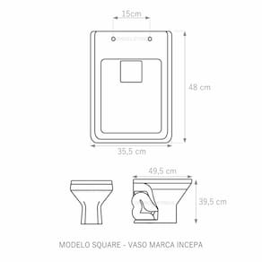 Assento Sanitário (tampa de vaso) fabricado em madeira MDF com pintura laqueada, com proteção raios UV, que garante excelente acabamento e durabilidade. Compatível com vasos (bacias/louças) sanitários com ou sem caixa acoplada. Tem calços de PVC instalados na tampa e no assento para proporcionar estabilidade ao uso, pois distribui o peso uniformemente sobre a louça sanitária. Montagem simples e fácil. Possui ferragem em alumínio anodizado que não enferruja/oxida e oferece muita resistência. O assento é acompanhado por parafusos para instalação. Embalagem dupla reforçada garante o recebimento do produto totalmente protegido. Especificações: - Dimensões da caixa: largura: 49,50cm. Altura: 4,00cm comprimento: 39,50cm - Peso do produto: 1,98kg - Acabamento: brilhante - Uso: este assento é adequado para uso na louça Incepa modelo Square - Garantia: 3 meses - Itens inclusos: Tampa e assento em MDF com calços de PVC, ferragem inoxidável, embalagem duplamente reforçada. Contém todos os parafusos e encaixes para instalação, sendo necessária somente uma chave de fenda para instalar o produto na louça sanitária. Instalação: posicione o produto, devidamente centralizado, em cima do vaso sanitário. Sem desmontar a ferragem, insira as buchas de borracha dentro dos furos da bacia sanitária. Encaixe os parafusos e posicione as porcas. Utilizando uma chave de fenda, aperte o parafuso no sentido horário até que o assento esteja firme e fixo no vaso. Manutenção: recomendamos a limpeza periódica com pano levemente umedecido com sabão neutro. Não usar esponjas abrasivas ou palha de aço nem qualquer tipo de produto químico.