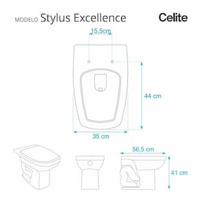 Compatível para uso em vaso sanitário Celite modelo Stylus com ou sem caixa acoplada.