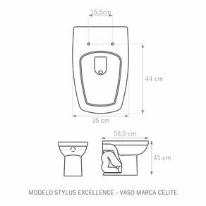 Assento Sanitário (tampa de vaso) fabricado em madeira MDF com pintura laqueada, com proteção raios UV, que garante excelente acabamento e durabilidade. Compatível com vasos (bacias/louças) sanitários com ou sem caixa acoplada. Tem calços de PVC instalados na tampa e no assento para proporcionar estabilidade ao uso, pois distribui o peso uniformemente sobre a louça sanitária. Montagem simples e fácil. Possui ferragem em alumínio anodizado que não enferruja/oxida e oferece muita resistência. O assento é acompanhado por parafusos para instalação. Embalagem dupla reforçada garante o recebimento do produto totalmente protegido. Especificações: - Dimensões da caixa: largura: 51,50cm. Altura: 4,00cm comprimento: 38,00cm - Peso do produto: 1,98kg - Acabamento: brilhante - Uso: este assento é adequado para uso na louça Celite modelo Stylus - Garantia: 3 meses - Itens inclusos: Tampa e assento em MDF com calços de PVC, ferragem inoxidável, embalagem duplamente reforçada. Contém todos os parafusos e encaixes para instalação, sendo necessária somente uma chave de fenda para instalar o produto na louça sanitária. Instalação: posicione o produto, devidamente centralizado, em cima do vaso sanitário. Sem desmontar a ferragem, insira as buchas de borracha dentro dos furos da bacia sanitária. Encaixe os parafusos e posicione as porcas. Utilizando uma chave de fenda, aperte o parafuso no sentido horário até que o assento esteja firme e fixo no vaso. Manutenção: recomendamos a limpeza periódica com pano levemente umedecido com sabão neutro. Não usar esponjas abrasivas ou palha de aço nem qualquer tipo de produto químico.