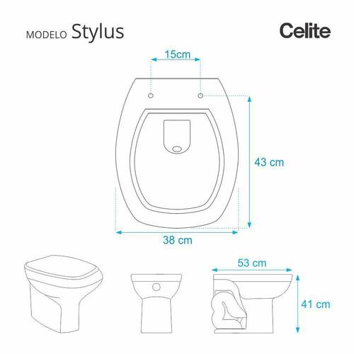 Este assento sanitário é compatível para uso em vaso sanitário Celite modelo Stylus com ou sem caixa acoplada (é compatível com os dois tipos de vasos).