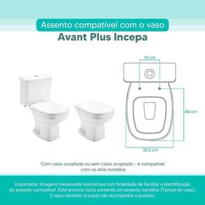 OBS.: O código 6LPF gravado na louça sanitária corresponde ao fluxo de água de uma descarga e não indica o modelo da mesma. RBN: Casa/Banho/Instalações e Acessórios de Banheiro/Vasos Sanitários e Peças/Assento de Vaso Sanitário | Conteúdo da Embalagem: 01 Assento Sanitário | Tipo: Assento Sanitário | Produto: Assento Sanitário | Site do Fabricante: www.ponttolavabo.com.br/ | Marca do Assento Sanitário: Pontto Lavabo | Garantia: 6 meses contra defeitos de fabricação | Dica: Instalação: sem desmontar o produto, posicione sobre o vaso sanitário e encaixe os dois parafusos com as borrachas pretas dentro do furo do vaso. Aperte com a chave de fenda no sentido horário até ficar firme. | Para Vaso Sanitário do Modelo: Avant Plus | Para vaso Sanitário da Marca: Incepa | Cor: Branco | Tonalidade: Branco | Material do Assento Sanitário: MDF Laqueado | Instruções de Limpeza: Recomenda-se a limpeza com pano úmido e sabão neutro, não utilizar produtos abrasivos ou químicos | Almofadado?: Não | Peso do Produto: 1.98 | Tipo de Fechamento: Fechamento Comum | Material da Fixação: Alumínio Anodizado | Precisa de baterias ou pilhas: Não | Regulamentações aplicáveis a produtos perigosos: Não se aplica | Código de certificação: Não se aplica Ean: 7899983692745