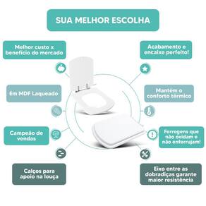 MATERIAL * Fabricado em madeira MDF com Pintura Laqueada na cor Branco * Mantém o conforto térmico do assento sanitário.