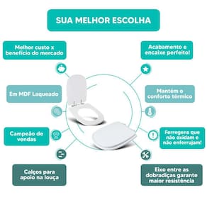MATERIAL * Fabricado em madeira MDF com Pintura Laqueada na cor Branco * Mantém o conforto térmico do assento sanitário.