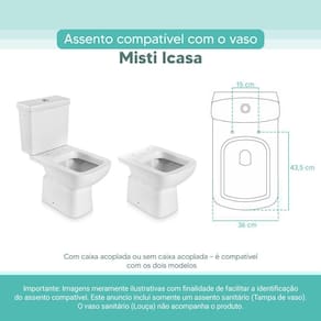 Assento Sanitário Tampa De Vaso Branco Mdf Laqueado El Misti Para Bacia Icasa O Assento Sanitário Tampa de Vaso Branco MDF Laqueado El Misti para bacia Icasa é o que faltava para deixar seu banheiro ainda mais bonito. CAMPEÃO DE VENDAS * Melhor Custo x Benefício do Mercado