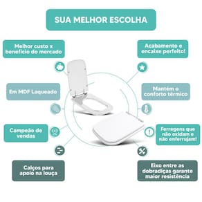 MATERIAL * Fabricado em madeira MDF com Pintura Laqueada na cor Branco * Mantém o conforto térmico do assento sanitário.
