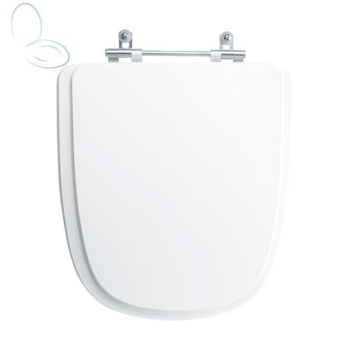 DIFERENCIAL * Possui calços que evitam o contato direto com a louça e que o assento deslize lateralmente. * Proporcionam maior estabilidade durante o uso. * Acabamento e encaixe perfeito no vaso sanitário. * Possui eixo entre as dobradiças, mantendo o assento sanitário firme na louça. * Sua ferragem metálica é super resistente e não oxida e nem enferruja.