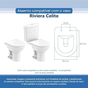 O Assento Sanitário Tampa de Vaso Branco Resina Poliester Riviera para bacia Celite é o que faltava para deixar seu banheiro ainda mais bonito.