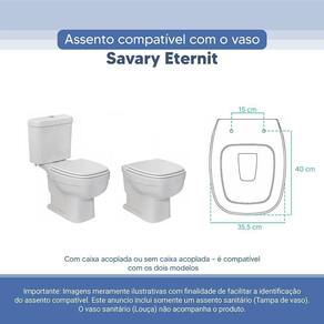 OBS.: O código 6LPF gravado na louça sanitária corresponde ao fluxo de água de uma descarga e não indica o modelo da mesma. RBN: Casa/Banho/Instalações e Acessórios de Banheiro/Vasos Sanitários e Peças/Assento de Vaso Sanitário | Conteúdo da Embalagem: 01 Assento Sanitário | Tipo: Assento Sanitário | Produto: Assento Sanitário | Site do Fabricante: | Marca do Assento Sanitário: Pontto Lavabo | : 6 meses contra defeitos de fabricação | Dica: Instalação: sem desmontar o produto, posicione sobre o vaso sanitário e encaixe os dois parafusos com as borrachas pretas dentro do furo do vaso. Aperte com a chave de fenda no sentido horário até ficar firme. | Para Vaso Sanitário do Modelo: Savary | Para vaso Sanitário da Marca: Eternit | Cor: Branco | Tonalidade: Branco | Material do Assento Sanitário: Poliéster | Instruções de Limpeza: Recomenda-se a limpeza com água e sabão neutro, não utilizar produtos abrasivos ou químicos | Almofadado?: Não | Peso do Produto: | Tipo de Fechamento: Fechamento Comum | Material da Fixação: Alumínio Anodizado | Precisa de baterias ou pilhas: Não | Regulamentações aplicáveis a produtos perigosos: Não aplicável | Código de certificação: Não aplicável | Ponto de Destaque01: Produzido em 100% Resina de Poliéster, impermeável | Ponto de Destaque02: Ferragem em Alumínio Anodizado (não enferruja, não oxida) | Ponto de Destaque03: Possui 15cm de distância entre furos | Ponto de Destaque04: Produto vai completo, fácil instalação | Ponto de Destaque05: Pontto Lavabo | Termos de Pesquisa01: Assento Sanitário; Tampa de Vaso Sanitário; Savary Branco Eternit; Savary 6lpf; Eternit 6lpf | Quantidade de itens: 1 | Fonte de energia: Não aplicável | Dimensões da embalagem: Altura: 5cm x Largura: 40cm x Comprimento: 50cm | de caixas: 1