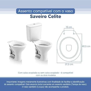 Assento Sanitário Tampa De Vaso Branco Resina Poliester Saveiro Para Bacia Celite O Assento Sanitário Tampa de Vaso Branco Resina Poliester Saveiro para bacia Celite é o que faltava para deixar seu banheiro ainda mais bonito. EXELENTE DURABILIDADE * É totalmente impermeável * Pode ser lavado com água à vontade