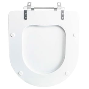 DIFERENCIAL * Possui calços que evitam o contato direto com a louça e que o assento deslize lateralmente. * Proporcionam maior estabilidade durante o uso. * Acabamento e encaixe perfeito no vaso sanitário. * Possui eixo entre as dobradiças, mantendo o assento sanitário firme na louça. * Sua ferragem metálica é super resistente e não oxida e nem enferruja.