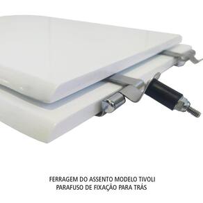 Assento Sanitário (tampa de vaso) fabricado em madeira MDF com pintura laqueada, com proteção raios UV, que garante excelente acabamento e durabilidade. Compatível com vasos (bacias/louças) sanitários com ou sem caixa acoplada. Tem calços de PVC instalados na tampa e no assento para proporcionar estabilidade ao uso, pois distribui o peso uniformemente sobre a louça sanitária. Montagem simples e fácil. Possui ferragem em alumínio anodizado que não enferruja/oxida e oferece muita resistência. O assento é acompanhado por parafusos para instalação. Embalagem dupla reforçada garante o recebimento do produto totalmente protegido. Especificações: - Dimensões da caixa: largura: 51,50cm. Altura: 4,00cm comprimento: 38,00cm - Peso do produto: 1,98kg - Acabamento: brilhante - Uso: este assento é adequado para uso na louça Ideal Standard modelo Tivoli - Garantia: 3 meses - Itens inclusos: Tampa e assento com calços de PVC, ferragem inoxidável, embalagem duplamente reforçada. Contém todos os parafusos e encaixes para instalação, sendo necessária somente uma chave de fenda para instalar o produto na louça sanitária. Instalação:posicione o produto, devidamente centralizado, em cima do vaso sanitário. Sem desmontar a ferragem, insira as buchas de borracha dentro dos furos da bacia sanitária. Utilizando uma chave de fenda, aperte o parafuso no sentido horário até que o assento esteja firme no vaso. Manutenção: recomendamos a limpeza periódica com pano levemente umedecido com sabão neutro. Não usar esponjas abrasivas ou palha de aço nem qualquer tipo de produto químico. Marca: LOJAROCCA