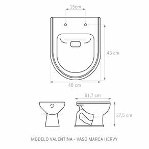 Assento Sanitário Almofadado (tampa de vaso) fabricado em polipropileno e polietileno especial. Resistente, durável, com excelente acabamento e design sofisticado. Assento macio, arco almofadado.Devido a sua composição este produto é totalmente impermeável e de fácil limpeza e higienização. Bactericida, contém proteção contra fungos e bactérias. Compatível com vasos sanitários de descarga convencional e também vasos com caixa acoplada. Acabamento brilhante no tampo e no assento. Fixação regulável para o perfeito encaixe na louça sanitária. Fácil limpeza, é higiênico e não acumula sujeira. O assento é acompanhado por parafusos para instalação e acabamentos. A tampa não cai, o sistema mantém o assento em pé quando aberto. Embalagem dupla reforçada garante o recebimento do produto totalmente protegido. Especificações: - Dimensões da caixa: largura: 50,00cm. Altura: 4,00cm comprimento: 40,00cm - Acabamento: brilhante - Uso: este assento é adequado para uso na louça Hervy modelo Valentina - Garantia: 3 meses - Itens inclusos: Tampa e assento, parafusos e embalagem duplamente reforçada. Instalação: posicione o produto, devidamente centralizado, em cima do vaso sanitário. Encaixe os parafusos e encaixe as porcas. Aperte até que o assento esteja firme no vaso. Manutenção: recomendamos a limpeza periódica com pano levemente umedecido com sabão neutro. Não usar esponjas abrasivas ou palha de aço nem qualquer tipo de produto químico.