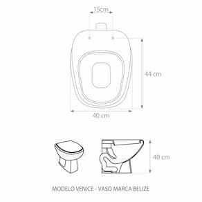 Assento Sanitário Almofadado (tampa de vaso) fabricado em polipropileno e polietileno especial. Resistente, durável, com excelente acabamento e design sofisticado. Assento macio, arco almofadado.Devido a sua composição este produto é totalmente impermeável e de fácil limpeza e higienização. Compatível com vasos sanitários de descarga convencional e também vasos com caixa acoplada. Acabamento brilhante no tampo e no assento. Fixação regulável para o perfeito encaixe na louça sanitária. Fácil limpeza, é higiênico e não acumula sujeira. O assento é acompanhado por parafusos para instalação e acabamentos. Embalagem dupla reforçada garante o recebimento do produto totalmente protegido. Especificações: - Dimensões da caixa: largura: 50,00cm. Altura: 4,00cm comprimento: 40,00cm - Acabamento: brilhante - Uso: este assento é adequado para uso na louça Belize modelo Venice - Garantia: 3 meses - Itens inclusos: Tampa e assento, parafusos e embalagem duplamente reforçada. Instalação: posicione o produto, devidamente centralizado, em cima do vaso sanitário. Encaixe os parafusos e encaixe as porcas. Aperte até que o assento esteja firme no vaso. Manutenção: recomendamos a limpeza periódica com pano levemente umedecido com sabão neutro. Não usar esponjas abrasivas ou palha de aço nem qualquer tipo de produto químico.
