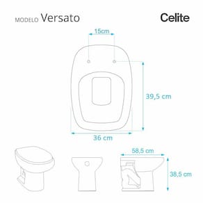 Este assento sanitário é compatível para uso em vaso sanitário Celite modelo Versato com ou sem caixa acoplada (é compatível com os dois tipos de vasos).