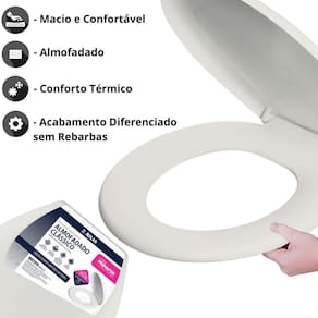 Este assento almofadado é ideal para consumidores exigentes que buscam conforto e qualidade em seu banheiro. Sua aparência elegante e design clássico, combinados com sua maciez e facilidade de instalação e limpeza, tornam-no uma escolha atraente para qualquer pessoa.