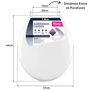 O assento acompanha um kit para fixação e possui encaixe universal, o que facilita a instalação em qualquer tipo de vaso sanitário. Além disso, possui um suspiro na parte traseira que auxilia na ventilação e reduz a umidade, evitando o acúmulo de odores desagradáveis.