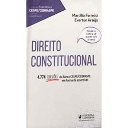 4.774 Questões da Banca CESPE/CEBRASPE em forma de assertivas POR QUE ESCOLHER O LIVRO ASSERTIVAS CESPE - DIREITO CONSTITUCIONAL É com muita satisfação que lançamos o livro de revisão por meio de assertivas da banca CESPE/CEBRASPE em Direito Constitucional. As questões foram separadas por assunto e organizadas de acordo com o ano de cobrança para que o estudante possa verificar a maior incidência e acompanhar a evolução da forma de cobrança no tempo. O material produzido é direto e objetivo para permitir uma experiência de revisão de fácil compreensão. Incluímos neste livro uma lista das questões para que você perceba a distribuição dos enunciados de acordo com os assuntos. Como o leitor perceberá, o maior número de questões está alocado nos assuntos Organização dos Poderes (1.525 questões) e Direitos Fundamentais (1.029). A banca, portanto, demonstra uma preferência pelos referidos assuntos, seja em virtude das várias possibilidades de cobrança do texto normativo e dos entendimentos doutrinários/jurisprudenciais, seja por conta da relação temática com os cargos objeto dos concursos públicos. Costumamos dizer que o segredo da aprovação é sempre uma boa revisão . Por isso, recomendamos que você utilize este livro para revisar todos os tópicos do Direito Constitucional e aprofundar no perfil da banca examinadora. Esperamos que você tenha um ótimo proveito e consiga ser aprovado no seu concurso público. Bons estudos! Marcílio Ferreira Professor, Procurador do Estado, Master Coach e Doutorando.