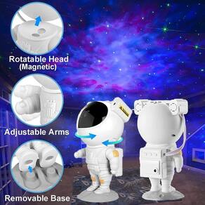 Você não precisa torrar o seu dinheiro para ir ao espaço, faça ele vir até você com o nosso mini Astronauta Projetor Já imaginou sentar ao lado do seu amor e contar as estrelas projetadas sem precisar sair do seu quarto Chegou a sua hora de subir aos céus nessa vida .Este projetor astronauta simula um céu estrelado, com suas galáxias e estrelas. São exibidas até 08 tipos de galáxias diferentes, cuja velocidade e brilho podem ser alterados, assim como o das estrelas. Tanto as estrelas quanto as galáxias podem ser exibidas juntas ou separadamente. Possui timer inteligente, que pode ser ajustado em 45 ou 90 minutos. A cabeça do astronauta é fixada por ímãs, sendo possível alterar o ângulo de direcionamento das luzes, de acordo com as suas necessidades. Fácil de mover e usar. Um presente maravilhoso tanto para crianças quanto para decorações diversas Marca: Trilha Multicoisas Ean: 2993500422107