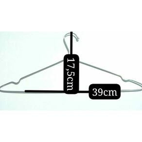 Cabide de arame cromado com 39 cm e 17,5 cm de altura. para organizar suas roupas otimizando o espaço. Cabide Ideal para roupas Adulto e Juvenil Ideal para camisa, camisetas com alças e muito mais. Ponteira de silicone transparente na ponta do gancho para não danificar as roupas. 100 Peças de cabides Adulto utilizado também para Juvenil