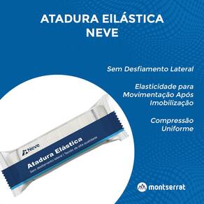 As Ataduras Elásticas NEVE são confeccionadas em tecido misto de alta qualidade, conferindo ao produto grande elasticidade no sentido longitudinal, sem desfiamento lateral e fios soltos. Sua confecção utiliza a Tecnologia Safe consistindo no entrelaçamento e sobreposição dos fios, permitindo uma malha mais resistente e sem desfiamentos, proporcionando também melhor retenção de líquidos e secreções em geral e maior conforto. Seu tecido misto traz elasticidade ao material permitindo uma livre movimentação mesmo após a imobilização, mantendo uma compressão uniforme. Possui acabamento lateral que impede que o tecido tenha fios soltos e possa até mesmo causar garroteamentos. Conta também com esterilização extra durante o processo de produção, garantindo exterminação dos vírus e bactérias ainda vivos, essencial para que a carga microbiana seja a menor possível e eliminando também as endotoxinas geradas pelo processo.