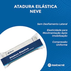 As Ataduras Elásticas NEVE são confeccionadas em tecido misto de alta qualidade, conferindo ao produto grande elasticidade no sentido longitudinal, sem desfiamento lateral e fios soltos. Sua confecção utiliza a Tecnologia Safe consistindo no entrelaçamento e sobreposição dos fios, permitindo uma malha mais resistente e sem desfiamentos, proporcionando também melhor retenção de líquidos e secreções em geral e maior conforto. Seu tecido misto traz elasticidade ao material permitindo uma livre movimentação mesmo após a imobilização, mantendo uma compressão uniforme. Possui acabamento lateral que impede que o tecido tenha fios soltos e possa até mesmo causar garroteamentos. Conta também com esterilização extra durante o processo de produção, garantindo exterminação dos vírus e bactérias ainda vivos, essencial para que a carga microbiana seja a menor possível e eliminando também as endotoxinas geradas pelo processo.